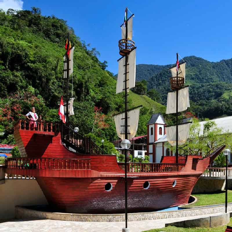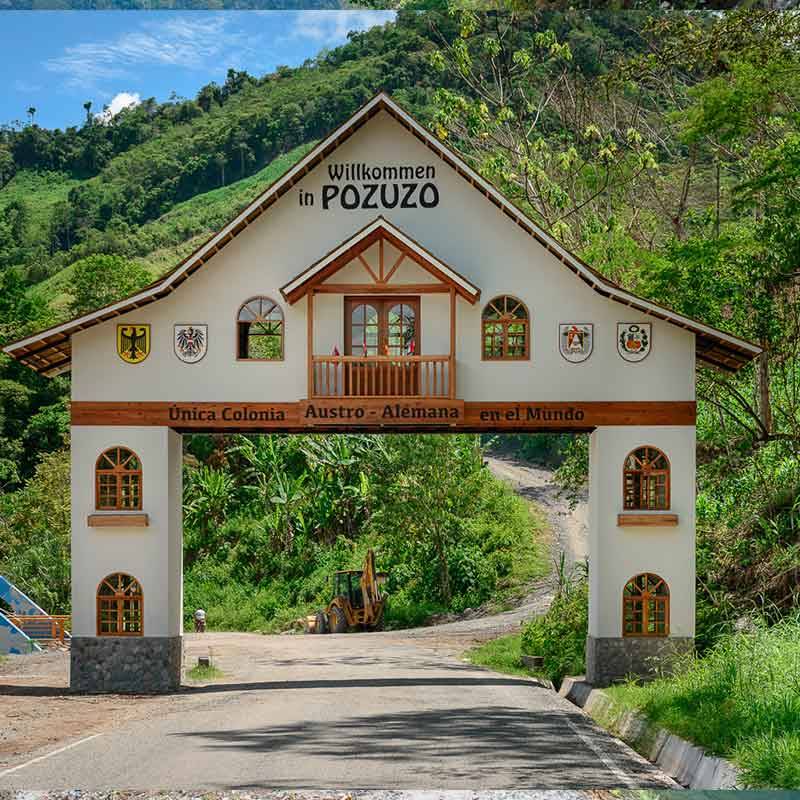 Plaza Principal de Pozuzo: Conoceremos la réplica del barco Norton y el famoso Portal de Bienvenida de la única colonia de este tipo en el mundo.
